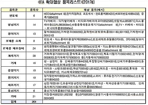빠르면 내년 하반기부터 반도체·디스플레이·TV 등 IT 201개 제품의 관세가 단계적으로 철폐될 전망이다.