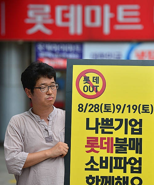 재벌개혁과경제민주화실현전국네트워크와 전국'을'살리기국민운동본부, 참여연대, 청년유니온, 전국유통상인연합회 등 10개 시민단체는 12일 오후 서울 중구 서울역 롯데마트 앞에서 기자회견을 열고 "롯데 사태를 계기로 전국 곳곳에서 롯데제품 불매운동에 나설 것을 경고한다"고 밝혔다.