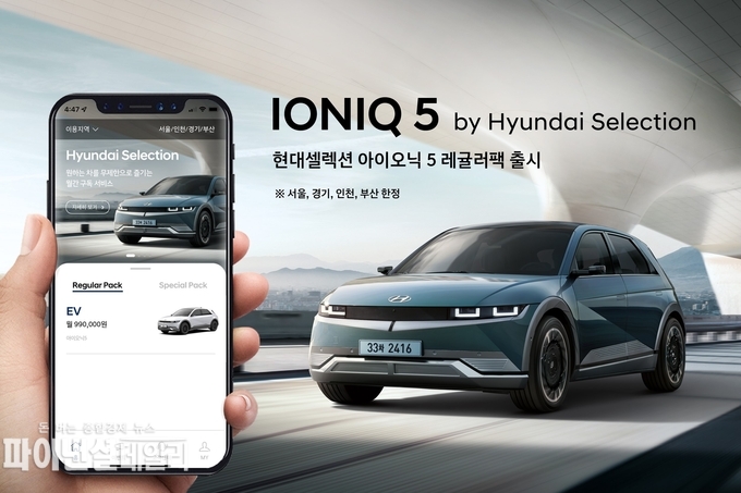 수도권의 현대셀렉션 고객은 아이오닉 5를 월(月) 단위 구독 프로그램인 '레귤러팩'에 가입해 이용할 수 있다. 서비스 확대를 기념해 충전 카드 발급 및 이용 안내를 별도로 진행하며, 구독 고객에게 소정의 사은품도 증정한다.