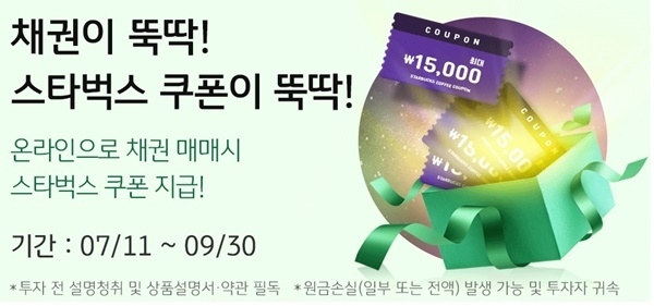 또한, 스타벅스 쿠폰 5천원을 지급받는 고객이 대상 채권을 추가로 100만원 이상 매수시 스타벅스 쿠폰 1만원을 추가 제공한다.