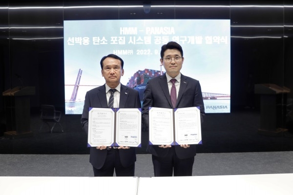 [파이낸셜데일리 강철규 기자] HMM(대표이사 김경배)이 파나시아와 선박용 탄소 포집 시스템 공동 연구에 대한 업무협약(MOU)을 체결했다고 15일 밝혔다.