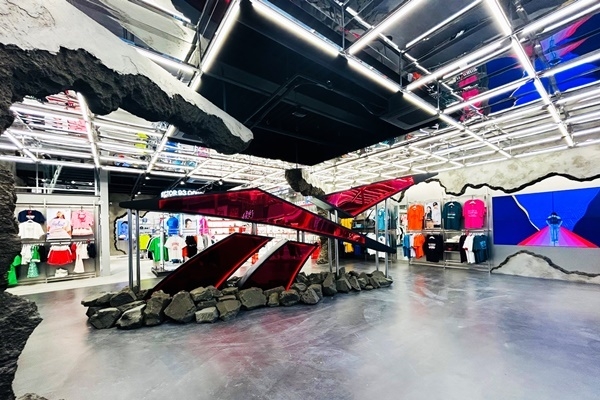 신발 컬렉션 조닝에는 디지털 스크린과 LED 모니터를 전면에 구현해 일반 매장과는 다른 프리미엄한 쇼핑 환경을 제공하며, 의류 컬렉션 조닝에는 입체적인 원형 구조물로 공간을 구성해 제품을 다각도에서 살펴볼 수 있도록 구현했다.
