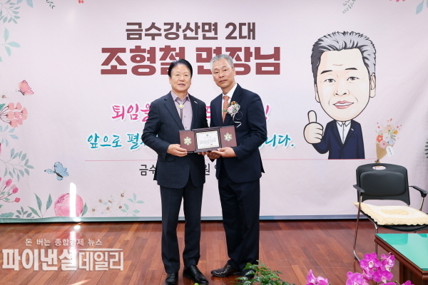 조형철 금수강산면장은 “34여년간의 공직생활을 되돌아보면 힘들고 고단했던 순간들도 있었지만, 그때마다 함께 고민하고 힘이 되어 준 동료 직원들과 늘 믿고 지지해준 주민들 덕분에 무사히 지나갈 수 있었다”고 감사의 뜻을 전했다.