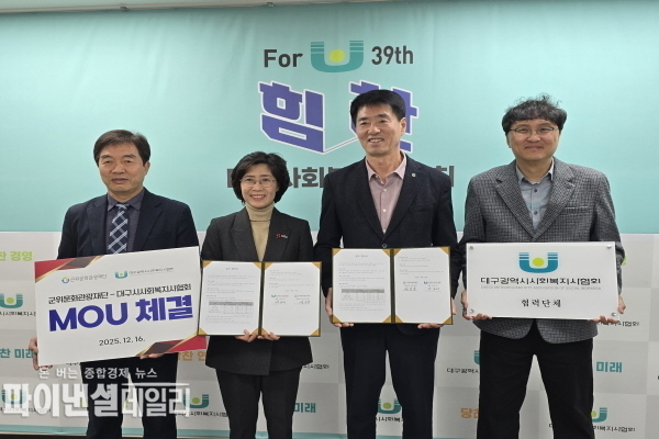 [파이낸셜데일리 박미화 기자] 군위문화관광재단(대표이사 사공정한)과 대구광역시사회복지사협회(회장 박보리)는 지난 16일(화), 대구광역시사회복지사협회 회의실에서 지역 상생 및 공동 발전을 위한 업무협약(MOU)을 체결했다고 밝혔다.