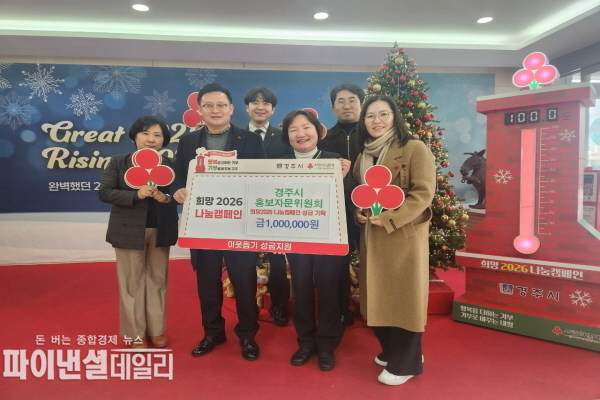 이에 대해 주낙영 경주시장은 “항상 시정 발전을 위해 힘써주시는 홍보자문위원회에서 나눔까지 실천해 주셔서 감사드린다”며 “기탁해주신 성금은 도움이 필요한 이웃들에게 소중히 전달하겠다”고 말했다.