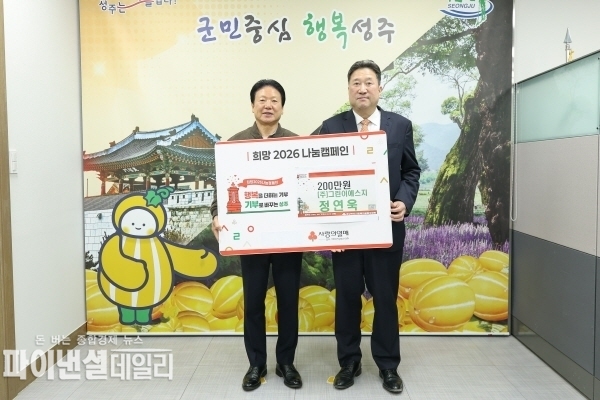 [파이낸셜데일리 박미화 기자] ㈜그린이에스지(사장 정연욱)에서는 13일(화) 성주군 관내 취약계층을 위한 성금 200만원을 기탁하며 '희망2026나눔캠페인'에 동참했다고 밝혔다.
