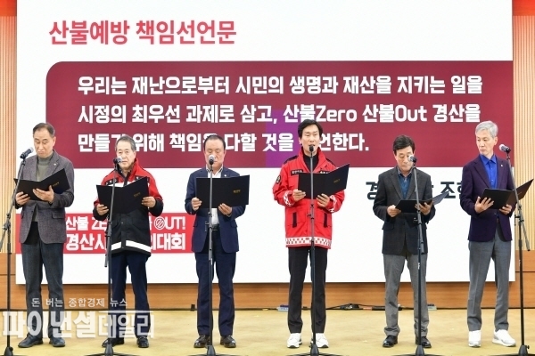 [파이낸셜데일리 박미화 기자] 경산시는 21일 경산시청 대회의실에서 『산불 ZERO·산불 OUT 결의대회』를 개최하고, 산불 예방과 신속한 현장 대응을 위한 공동 실천 의지를 다졌다고 밝혔다.