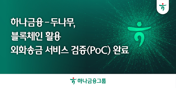 [파이낸셜데일리 송지수] 하나금융그룹은 두나무와 공동으로 블록체인 기술을 활용한 외화송금 서비스에 대한 기술검증(PoC)을 완료했다고 27일 밝혔다.