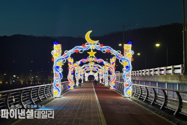 루미나리에는 조명을 활용해 구조물과 공간을 연출하는 야간 경관 조성 기법으로, 이번에 설치된 시설은 별과 달을 모티브로 한 조형물과 곡선형 아치 구조로 구성됐다.