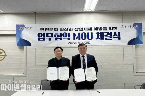 [파이낸셜데일리 박미화 기자] 구미도시공사는 대한산업안전협회와 산업현장 안전문화 확산 및 근로자 산업재해 예방을 위한 업무협약(MOU)을 체결하고, 안전 중심의 경영체계 구축을 위한 협력에 나섰다.