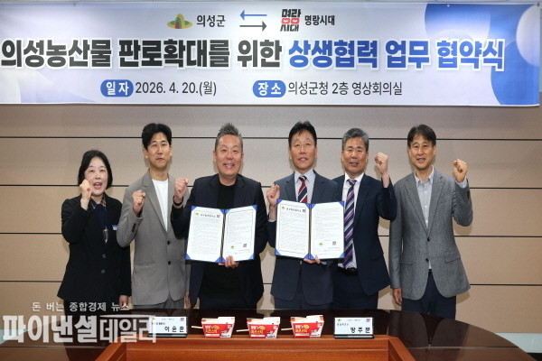 [파이낸셜데일리 박미화 기자] 의성군(군수 김주수)은 20일 군청 영상회의실에서 명랑시대외식청년창업협동조합(이하 명랑시대)과 의성 농특산물 판로 확대를 위한 상생협력 업무협약(MOU)을 체결하며 협력 관계를 이어간다고 밝혔다.