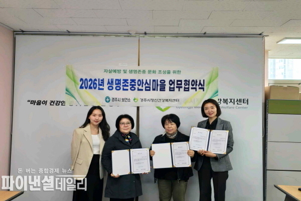 [파이낸셜데일리 박미화 기자] 경주시정신건강복지센터(센터장 박재홍)는 지난 23일 현곡면 금장주공 경로당, 삼성아파트 경로당과 ‘생명존중안심마을’ 조성을 위한 업무협약을 체결했다고 밝혔다.