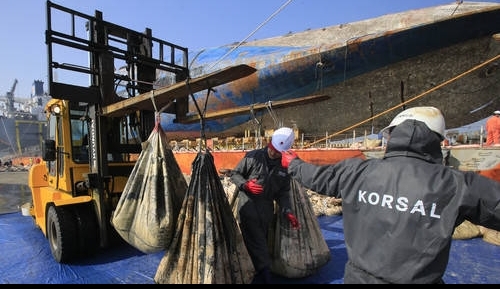하지만 선체 내 진흙이 굳어 배수가 원활하지 않았고, 이에 선체조사위는 모듈 트랜스포터 24개를 추가해 하중을 늘리기로 했다. 결국 공연히 선체에 구멍만 뚫게 된 셈이다.