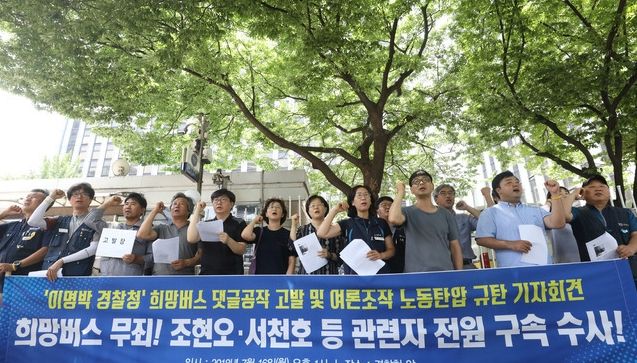 최근 한 언론보도에 의하면 경찰청 특수수사단은 MB정부시절 경찰의 댓글공작을 수사하면서 당시 경찰이 희망버스를 '고통버스'나 '절망버스'로 조롱하는 글을 조직적으로 올린 정황을 포착했다.