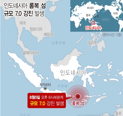 외신 등에 따르면, 5일(현지시간) 밤 인도네시아 롬복섬 북동쪽 린자니 화산 인근에서 규모 7.0(미국지질조사국 USGS) 강진이 발생해 최소 82명이 사망하고 수백 명이 다쳤다. 쓰나미 경보도 발령됐다.