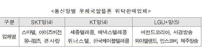 [파이낸셜데일리=강철규 기자] 과학기술정보통신부 우정사업본부(이하 우본)이 우체국알뜰폰 위탁판매업체로 13개 사를 선정했다.