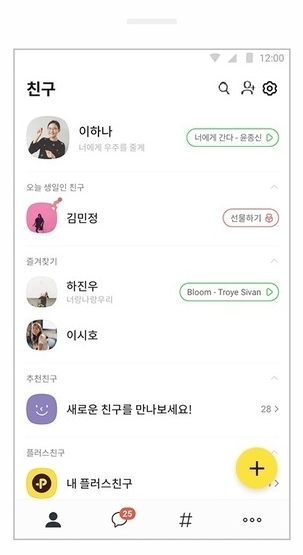 채팅창 친구목록 오른쪽 상단에 친구 찾기, 채팅방 만들기, 환경 설정 버튼을 한 곳으로 모았다. 또 친구목록에서 상태메시지의 위치가 이름 아래로 이동, 음악과 동시에 프로필에 표시된다.