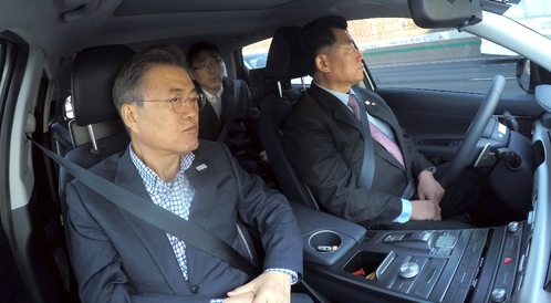 문 대통령은 이 자리에서 현대차 및 에어리퀴드 관계자들과 수소전기차 기술개발 동향과 충전 인프라 활성화 방안 등에 대한 설명도 들었다.