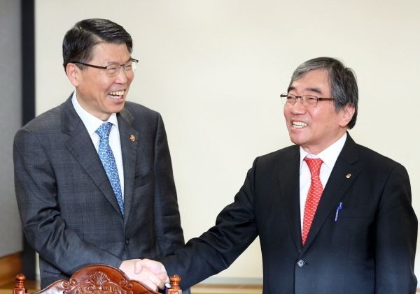 그는 이날 신종 코로나바이러스 감염증(코로나19) 확산에 따른 경기 회복 대응방안을 논의하기 위해 홍남기 경제부총리 겸 기획재정부 장관, 이주열 한국은행 총재, 윤석헌 금감원장과 만났다. 경제·금융 수장들은 이 자리에서 정부의 지원대책과 함께 민간에서도 정상적인 경제활동에 나서는 등 모두가 힘을 합쳐야 한다고 강조했다.