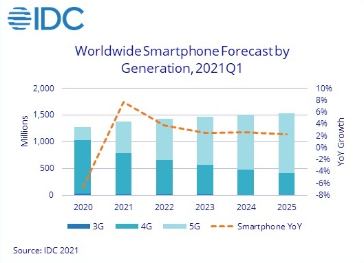 7일 시장조사기관 IDC에 따르면 올해 글로벌 스마트폰 출하량은 13억8000만대로 전년 대비 7.7% 성장할 것으로 예상된다. 2019년과 2020년 하향곡선을 그리던 스마트폰 시장이 2년 만에 반등세로 전환할 것이라는 예상이다.