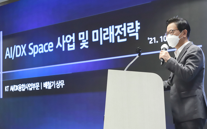 이날 KT는 AI/DX Space 사업의 미래전략으로 기축 아파트를 대상으로한 ‘AI 리프트’ 서비스와 ‘AI 호텔’, ‘AI 케어’ 사업 및 환기 및 실내 공기질 관리를 위한 ‘환경DX솔루션’ 등을 소개했다. 이와 함께 산업 환경의 변화에 맞춰 AI 기반의 공간특화 서비스인 ‘SDaaS(Space DX as a Service)’도 선보이겠다는 포부를 밝혔다.