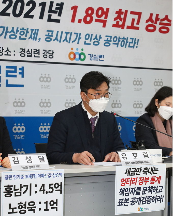 국토부 장관 비교 결과 각각 김현미 전 장관(임기 42개월) 4억6000만원, 변창흠 전 장관(임기 5개월) 1억, 노형욱 장관(임기 6개월) 1억씩 올랐다. 경실련은 "김현미 장관은 임기가 길었던만큼 임기 내 상승액도 가장 많다"며 "후임 장관들 또한 집값 상승의 책임이 매우 큰 것으로 확인됐다"고 평가했다.