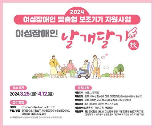 여성장애인 날개달기 사업 지원자로 선정되면 경기도재활공학서비스연구지원센터 소속 보조공학 전문가의 상담을 거쳐서 맞춤형 보조기기를 지원받는다. 이후 사용 및 관리 교육, 사후 관리 서비스를 받을 수 있는 점도 이번 사업의 장점이다.