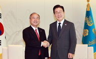 [파이낸셜데일리 강철규] 이재명 대통령이 5일 손정의 일본 소프트뱅크 그룹 회장과 만나 "한일 간 인공지능(AI) 분야 협력이 중요하다"며 가교 역할을 해달라고 당부했다. 이 대통령은 이날 용산 대통령실에서 손 회장을 접견하고 "앞으로 우리가 해야 할 협력 과제 중요한 게 있다"며 이같이 말했다. 이 대통령은 손 회장을 향해 "대한민국이 세계 인공지능(AI) 3대 강국을 지향하며 많은 노력을 기울이고 있다"며 협조와 지원을 요청했다. 이 대통령은 "대한민국에는 첫눈을 귀히 여겨 서설이라고 하는데 손 회장님은 이전에도 김대중 대통령님, 문재인 대통령님 때 좋은 제안을 해서 대한민국 경제 발전에 큰 도움이 됐다"며 "AI 3대 강국 실현을 위한 좋은 제안과 조언을 부탁드린다"고 했다. 이어 AI 기본사회를 소개하며 "상수도 하수도처럼 대한민국 내에서 모든 국민 모든 기업 모든 집단이 인공지능을 최소한 기본적 활용하는 사회를 만들고자 한다"며 "인공지능의 위험함과 유용성을 알고 있는데 위험함을 최소화하고 유용성 측면에서 투자하고 있다"고 설명했다. 이 대통령은 또 손 회장이" 한미 통상 협상 과정에서 상당한 도움과 조언을 줬다"며 사의를 표하기도 했다. 아울러 "