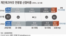 개인회생 신청자 수가 해마다 늘어나는 가운데 유독 20대와 60대의 파산자 증가 속도가 가파르다. 5일 신용회복위원회의 2016년 채무조정신청 현황에 따르면 20대 개인워크아웃 신청자가 증가수가 전 연령대에서 가장 빠른 것으로 나타났다. 개인워크아웃이란 빚을 갚지 못한 기간이 90일이 지난 채무자에게 지원되는 채무조정 프로그램이다.2015년 개인워크아웃을 신청한 20대는 8023명으로 전체 개인워크아웃 신청자 중에서 차지하는 비중도 10.5%였다. 하지만 1년새 1096명(13.7%)이 늘어났고 전체 워크아웃 신청자에서 차지하는 비중도 11.5%로 1%p 많아졌다. 60대 이상의 개인워크아웃신청자 증가세가 20대의 뒤를 이었다. 2015년 개인워크아웃을 신청한 60대 이상의 고령자는 6029명으로 전체의 7.9%였다. 1년 뒤에는 6599명으로 9.5% 늘어났다. 전체에서 차지하는 비중도 8.3%로 0.4%p 많아졌다. 반면 40대 개인워크아웃 신청자는 전년과 비교해 0.8%증가에 그쳤다. 30대와 50대도 각각 3.2, 3.5% 늘어났다. 전체에서 차지하는 비중은 ▲30대 27.6%(전년비 0.2%p 감소) ▲40대 30.8%(1%p 감소)▲50대 21.8