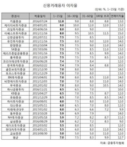 증시가 6년여 동안의 박스피(코스피+박스권)를 탈출하고 새 역사를 쓰자 빚까지 내 주식 시장에 뛰어드는 개인 투자자들이 급증하고 있다. 이런 가운데 증권사들이 개인 투자자에게 주식 거래를 위한 대출을 해주면서 고금리를 챙겨 논란이 되고 있다.9일 금융투자협회에 따르면 신용거래융자금은 지난달 말 8조5478억원으로 전달 말의 7조8154억원에 비해 9.4% 늘었다. 사상 처음으로 8조원을 넘어선 것이다. 또 전년 동기와 비교해서는 25.9% 불었다. 신용거래융자란 증권사들이 개인 투자자들에게 주식 투자금을 대출해주는 일종의 '주식담보대출'이다. 이런 가운데 기준금리가 현재 연 1%까지 하향 조정되는 등 장기간 저금리 기조가 이어지고 있음에도 신용거래융자는 높은 수준을 유지하고 있다는 지적이다. 신용거래융자 서비스를 하는 증권사 30곳의 이자율 평균을 기간별로 보면 ▲1~15일 연 7.0% ▲16~30일 연 7.5% ▲31~60일 연 8.3% ▲61~90일 연 8.9% ▲91~120일 연 9.8% ▲121~150일 연 9.9% ▲151~180일 연 9.6% ▲180일 초과 연 9.9% 등이다. 한국은행 금융통화위원회가 2012년 7월 기준금리를 연 3.00%로
