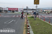 [파이낸셜데일리 박미화 기자] 성주군 성주읍(읍장 배해석)은 쾌적하고 정돈된 거리환경을 조성하기 위해 8월 20일부터 읍 시가지 내 회전교차로 및 도로변 화단정비를 실시하고 있다. 이번 정비는 LG사거리회전교차로 등 회전교차로 및 도로변 화단에 무성하게 자란 잡초 등 풀베기를 실시하고 작업 후에는 화단에 방치되어 있는 쓰레기도 함께 수거 할 예정이다. 또한, 통행량이 많은 회전교차로에서 주민들의 불편과 안전사고가 발생하지 않도록 작업 시 신호수를 배치하는 등 현장 안전관리에 만전을 기했다. 성주읍장은“읍에서는 도심미관을 개선하기 위해 주요 도로변 풀베기 뿐 아니라 화단 등도 지속적으로 정비하여 깨끗한 거리환경을 제공하겠다.”고 전했다.