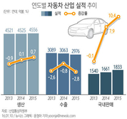 지난해 국내 자동차산업이 러시아, 중남미 등 신흥시장 수요부진으로 3년 연속 수출이 감소했다. 다만 생산실적은 개별소비세 인하에 따른 역대 최대 수준의 내수판매로 전년 수준을 유지했다.10일 산업통상자원부에 따르면 지난해 국내 자동차 생산량은 455만6000대로 전년 452만5000대보다 0.7% 증가했다. 지난해 수출은 297만6000대보다 전년보다 2.8% 줄었다. 지난 2012년(0.6%) 이래 2013년 308만9000대(-2.6%), 2014년 306만3000대(-0.8%)로 3년 연속 감소세를 기록했다.미국(19.2%), 유럽연합(EU· 10.4%) 등 선진국은 수출이 증가했지만 러시아(-62.7%), 중동(-11.5%), 중남미(-13.8%), 아프리카(-35.2%), 중국(-45.4%) 등 신흥국은 경기침체로 판매가 감소했다.수출액 기준판매액도 전년보다 6.4% 하락한 458억 달러에 그쳤다.지난해 1~11월 완성차 평균 수출가격은 1만4299달러로 전년 1만4867달러보다 3.8% 감소했다. 산업부는 "경차 수출증가 등 차급 구성변화와 국제 가격경쟁심화로 평균 수출단가가 하락했다"고 설명했다. 자동차부품 수출도 전년보다 4.1% 감소한 255