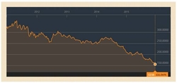 추락하는 원유 값의 바닥은 어디일까. 정말로 국제원유가가 배럴당 20달러까지 떨어질까? 세계경제의 침체와 석유수출국기구(OPEC)의 감산 합의 실패 등에 따른 공급과잉으로 내년에도 유가의 추가 하락이 이어질 것이라는 전망이 제기되고 있다. CNN방송은 20일(현지시간) 내년 국제유가가 골드만 삭스가 앞서 전망한데로 2002년 이래 최저치인 배럴당 20달러 선까지 떨어질 가능성이 높다고 보도했다. 그러나 2016년 하반기부터 반등을 시작해 내년 중 배럴당 51~56달러 선까지 회복한 뒤 장기적으로는 60~80달러 정도까지 오를 것으로 전망했다. ◇ 국제원유 18개월 동안 68% 하락원유가격은 지난 18개월 동안 무려 68%나 떨어졌다. 올 한 해 동안에만 42%나 폭락했다. 지난 5월 6일 올 최고가인 65.63달러까지 기록했던 두바이유는 지난주 18일 배럴당 32.98달러를 기록했다. 전날인 17일에는 11년 만에 가장 낮은 수준인 32.86달러로 집계됐다. 서부텍사스산 원유(WTI)는 18일 배럴당 34.73달러에 거래를 마쳤다. 이는 2009년 2월 18일 이후 최저치다.월스트리트의 전문가들은 내년 말 쯤엔 유가가 반등할 것으로 예상하고 있다. 그러나 그
