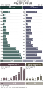 글로벌 경기 침체 속에 무역장벽이 갈수록 높아지고 있다. 자국 산업 보호를 위해 직접적인 수입 규제는 물론 교묘한 비관세장벽까지 동원한다. 특히 정보기술(IT), 철강, 화학 등 글로벌 공급 과잉 업종들을 중심으로 무역 장벽을 높게 쌓아가는 추세다. 한쪽에서는 자유무역협정(FTA)를 통해 관세를 인하 또는 철폐하면서도 다른 한쪽에서는 노골적으로 수입을 규제하는 상황이다. 세계 경제 곳곳에서 높아지는 무역장벽 실태를 점검한다. 편집자 주글로벌 경기 침체 여파로 수출 부진에 대한 우려가 높아지고 있다. 전세계적으로 수요 감소가 교역 확대에 걸림돌로 작용하고 있지만 수입 규제를 통해 자국 산업을 보호하려는 움직임도 갈수록 뚜렷해지고 있다. 잇단 FTA 체결을 통해 무역자유화에 박차를 가하면서도 수입 규제와 비관세장벽을 강화하는 추세다. 18일 한국무역협회에 따르면 지난해 12월 말 현재 국내 기업에 대한 해외 각국의 수입규제는 32개국에서 총 175건에 이르고 있다.이는 무역기술장벽 등 비관세장벽을 제외하고 반덤핑 규제와 반덤핑·상계관세, 세이프가드 등 직접적인 수입규제 조치만을 합산한 통계다.수입 규제는 글로벌 금융위기 이후 크게 늘어나는 추세다. 지난 2010