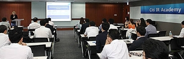 한국씨티은행은 11일 서울 신문로에 있는 씨티코프센터 연수실에서 기업고객 기업설명(IR) 담당자 50여 명을 초청, 세미나를 열었다.씨티은행은 참석자들에게 해외의 IR관련 시장 동향에 대한 정보전달과 매년 미국에서 개최되는 IR관련 회의인 NIRI(National Investor Relations Institute)에서 다뤄진 내용 등을 소개했다. 씨티은행은 지난 2008년부터 매년 2~3회 IR 관련 업무에 대한 세미나를 열고 있다.