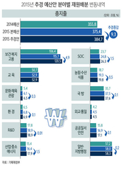 정부가 3일 추가경정예산안을 편성했다. 국회의 동의절차가 필요하지만 규모는 12조원 내외로 정해질 전망이다.세입경정에 5조6000억원, 세출경정에 6조2000억원이 쓰인다. 여기에 중진공기금과 관광진흥기금 등 기금 변경을 통해 3조1000억원을 추가해 지출규모는 14조9000억원으로 확대된다.또한 공공기관 및 민간 투자 2조3000억원, 신·기보금 출자를 통해 4조5000억원을 끌어다 쓰면 총 재정보강 규모는 21조7000억원에 달할 전망이다.이중 관심을 끄는 것이 세출경정 예산이다.기획재정부가 그동안 추경 효과에 반신반의하면서도 결심한 배경에는 메르스 변수가 있었다. 게다가 가뭄까지 겹쳐지면서 경기회복에 좋지 않음 흐름이 보이자 결국 지난 2013년에 이어 2년만에 추경이라는 칼을 빼들었다.최경환 경제부총리 겸 기획재정부 장관은 2일 재정정책자문회의에 참석해 "경기회복 모멘텀이 유지되도록 과감하고 선제적 정책 대응이 필요하다"며 추경의 당위성을 설명하기도 했다.이에 따라 이번 추경은 ▲메르스대응과 피해업종 ▲가뭄 및 장마대책 ▲서민생활 안정 ▲지역경제활성화 및 생활밀착형 안전투자 등 4개 부문에 집중된다.◇메르스 피해업종에 2.5조 투자메르스와 피해업종 지