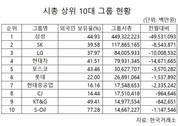 [파이낸셜데일리=송지수 기자]국내 10대 그룹 시가총액이 최근 한 달 새 93조원 넘게 증발했다. 증시가 미중 무역갈등 지속, 한미 금리 역전폭 확대, 국내 수출 및 증시 주춧돌인 반도체 산업에 대한 업황 우려 고조 등으로 급락세를 이어가는 가운데 시총 상위 그룹사들도 타격을 받은 것이다. 25일 한국거래소에 따르면 삼성·SK·LG·현대차·포스코·롯데·현대중공업·CJ·KT&G·S-Oil 등 상호출자제한 기업집단 중 자산총액 상위 10대 그룹의 시총은 지난 24일 현재 853조3473억원으로 한 달 전에 비해 93조1534억원(10.2%) 감소했다. 10대 그룹 시총은 한 그룹도 예외 없이 뒷걸음질 쳤다. 같은 기간 코스피 전체 시총(1437조원)이 9.7% 감소한 것과 비교해서는 소폭 덜하지만 통상 증시 하락 장세일 때도 상대적으로 견조한 모습을 보인 것을 고려하면 타격이 상당하다는 진단이다. 그룹별로 보면 국내 대표 그룹인 삼성의 시총은 449조3222억원으로 같은 시간 49조5311억원 줄었다. 10대 그룹 전체 시총 감소액의 53.2%를 삼성이 차지하며 가장 큰 규모로 축소됐다. 국내 수출과 증시를 떠받치고 있는 반도체 업황에 대한 우려가 커지면