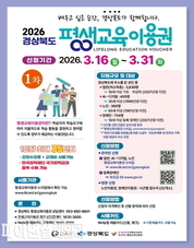 [파이낸셜데일리 박미화 기자] 경북도는 3월 16일부터 3월 31일까지 “2026년 평생교육이용권”지원 대상 도민을 모집한다고 밝혔다. 평생교육이용권 지원사업은 사회·경제적 여건에 따른 평생교육 참여 격차를 줄이고 교육 기회를 확대하기 위해 경북도민이 다양한 평생교육 과정을 수강할 수 있도록 교육비를 지원하는 제도이다. 경북도는 올해 5,388명에게 1인당 연간 35만 원, 총 18억 8,500만 원 규모의 이용권을 지급할 계획이다. 선정된 도민은 평생교육이용권 사용이 가능한 기관에서 자격증, 어학, 창업, 인문학 등 다양한 강좌 수강료와 교재비로 지원금을 사용할 수 있다. 이번에 모집하는 1차 지원대상은 △일반 3,839명(19세 이상 기초생활수급자·차상위계층 해당) △ 에이아이(AI)·디지털 455명(30세 이상)△노인 360명(65세 이상) △장애인 734명(19세 이상 등록장애인)이다. 특히, 올해부터는 국가장학금과 중복 수혜가 가능해져 경제적으로 어려운 학생들도 컴퓨터, 어학, 자격증 등 다양한 평생교육 과정을 수강할 수 있게 되었다. 이상수 경상북도 지방시대정책국장은“빠르게 변화하는 시대에 학습은 새로운 가능성을 여는 중요한 열쇠”라며 “더 많은