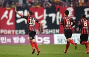 '몬테네그로 특급' 데얀(FC서울)이 3경기 연속 득점포를 가동하며 서울의 시즌 마지막 홈경기 승리를 이끌었다.데얀은 24일 오후 2시 서울월드컵경기장에서 열린 부산아이파크와의 현대오일뱅크 K리그 클래식(1부 리그) 2013 38라운드 홈경기에서 전반 26분과 후반 34분 연속골을 터뜨리며 팀의 3-2 승리를 견인했다.시즌 막판 데얀의 골 감각이 절정에 올랐다. 이날 2골을 추가한 그는 3경기 연속으로 골맛을 보며 단숨에 시즌 17호골 고지에 올랐다. 최근 4경기에서 무려 7골을 폭발시켰다.싱겁게 끝나는 듯 했던 리그 득점왕 경쟁에 다시 불이 붙었다.현재 득점 1위는 김신욱(울산·19골)이다. 2위는 데얀과 페드로(제주). 데얀이 무서운 기세로 골을 쓸어 담으며 'K리그 최고 골잡이' 타이틀의 주인공을 쉽사리 예측할 수 없게 됐다. 데얀은 지난 2011·2012시즌에 이어 리그 득점왕 3연패에 도전한다.한결 홀가분해진 서울이다. 지난 23일 5위 수원삼성(승점 50)이 울산현대(승점 73)에 1-2로 패하며 서울은 자동적으로 내년 아시아축구연맹(AFC) 챔피언스리그 출전권을 획득하게 됐다.서울(17승10무9패·승점 61)은 4경기 연속 무패(3승1무) 행진을