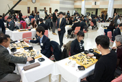 국내 대표 프로기사들과 팬들이 바둑축제에서 어우러졌다.23일 서울 여의도동 KB국민은행 본점 4층 대강당에서 거행된 'KB국민은행과 함께 하는 프로기사 초청 고객사랑 바둑 페스티벌'이 그 자리다.조훈현(60)·서봉수(60)·이창호(38)·유창혁(47) 9단 등 한국기원 대표기사 30명이 나서 KB국민은행 고객 60여명과 지도기를 가졌다.이번 지도기는 통상적인 5대 1이나 10대 1 형태의 다면기가 아니라 2-1, 드물게 1-1로 펼쳐질 정도로 밀도가 매우 높아 큰 호응을 얻었다시상 부문도 '토끼와 거북이'(지도기 시간의 최단·최장국)·'대마방치'(잡힌 대마의 수가 최다)·'화국'(집 차이가 최소)·'대마포획'(프로기사의 대마를 잡은 대국자)·'사석왕'·'특별상'(최고령 참가자) 등으로 구성돼 재미를 더했다.참가자들은 기념 부채에 기사들의 휘호를 받기도 하고, 기념 사진 액자를 선물로 받는 등 시종 즐거운 시간을 보냈다.KB국민은행 강문호 전무이사는 "한국바둑을 대표하는 바둑리그의 후원사로서 고객과 전국의 바둑팬들을 위한 가치창출에 연구하고 있으며, 스포츠나 문화면에서도 국민 여러분 가까이에 가고자 노력하겠다"고 밝혔다.한편 이날 한국기원에서 속개된 포스트시즌