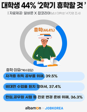 [파이낸셜데일리 강철규 기자] 코로나19 장기화로 인해 취업난이 지속되는 가운데 대학생 10명 중 4명은 올해 2학기에 휴학하겠다는 뜻을 내비쳤다. 2년 전보다 20%가량 늘어난 수준이다. 13일 잡코리아·알바몬이 최근 대학생 1470명(전문대 215명·4년제 1255명)을 대상으로 '2학기 휴학 계획'에 관해 설문조사를 실시한 결과 44.4%가 올해 2학기 휴학 계획과 관련해 '휴학 계획이 있다'고 답했다. 2019년도 실시한 같은 조사때 같은 응답이 19.0%였던 것과 비교하면 올해 2학기 휴학 계획을 밝힌 대학생 비율이 25.4%포인트 증가한 셈이다. 코로나19 장기화로 인해 취업이 어려워지자 졸업을 늦추는 이들이 많아진 것으로 풀이된다. 휴학 사유도 2년 전과 비교해 달랐다. 2년 전에는 '진로 모색'을 이유로 휴학하려는 이들이 많았던 반면 올해는 '자격증 취득 준비'라는 이유가 가장 많았다. 대학 유형과 학년별로 휴학 계획과 이유를 살펴본 결과 2학기 휴학 계획은 학년이 높을수록 비례했다. 전문대학 대학생들 중에서는 ▲1학년 47.2% ▲2학년 50.0%의 학생들이 휴학 계획을 세웠다. 4년제 대학생들 중에서는 ▲1학년 29.5% ▲2학년 46.7%