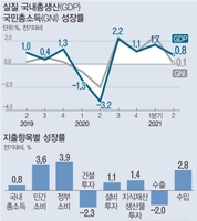 [파이낸셜데일리 강철규 기자] 올해 2분기 우리나라의 경제성장률이 0.8%로 상향 조정되면서 연간 4% 성장 달성 가능성이 높아졌다. 다만 코로나19 4차 대유행에 따른 민간소비가 위축될 가능성이 있어 3분기 성장률이 둔화될 가능성도 있다. 한국은행이 2일 발표한 '2021년 2분기 국민소득(잠정)'에 따르면 2분기 실질 GDP(국내총생산)는 전기대비 0.8% 증가했다. 속보치(0.7%)보다 0.1%포인트 상향 조정된 것이다. 코로나19로 경기가 위축됐던 지난해 2분기와 비교하면 6% 성장했다. 전년동기대비로도 속보치(5.9%)보다 0.1%포인트 올라갔다. 2분기 마지막 달인 지난 6월의 산업활동동향, 국제수지, 기업 영업실적 등 실적치가 속보치에 반영되지 않았다가 이번에 반영됐다. 경제활동별로는 제조업(-0.2%포인트)이 하향 수정된 반면 서비스업(+0.3%포인트)은 상향 수정됐다. 지출항목별로는 재화수출(-0.1%포인트) 등이 하향 수정된 반면 설비투자(+0.5%포인트)와 건설투자(+0.2%포인트) 등이 상향 수정됐다. 분기별 성장률은 지난해 1분기(-1.3%)와 2분기(-3.2%) 두 분기 연속 역성장 한 뒤 3분기(2.1%), 4분기(1.2%)에 이어