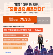 [파이낸셜데일리 강철규 기자] 생산가능 인구 감소 등으로 중장년 채용에 대한 논의가 활발해지는 가운데 일선 기업 4곳 중 3곳은 중장년층을 고용하고 있거나 채용한 경험이 있는 것으로 나타났다. 구인구직 매칭플랫폼 사람인에 따르면 기업 661개를 대상으로 '50대 이상 중장년층 채용 현황'을 조사한 결과 75.3%가 현재 중장년층 직원이 있거나 채용한 적이 있다고 밝혔다. 이들 기업이 중장년층 직원을 채용한 이유는 '경력, 인적 네트워크 등 활용할 수 있는 역량이 커서'(50.6%·복수응답)가 1위였다. 다음으로 '고용유지가 잘 돼서'(22.7%), '젊은 층이 지원을 꺼리는 업직종이어서'(22.3%), '채용시 지원자 모수 자체가 너무 적어서'(14.3%), '낮은 연봉 등 인건비를 절감할 수 있어서'(13.5%), '중장년 일자리 창출에 동참하기 위해서'(9.8%) 등의 답변이 이어졌다. 대체로 중장년층 직원에 대한 만족도도 '높다'는 응답이 67.9%를 차지했다. 이어 '낮다'(19.3%), '매우 높다'(9.8%), '매우 낮다'(3%) 순이었다. 중장년층을 채용하는 직무는 '생산, 제조'(24.7%·복수응답)가 가장 많았다. 계속해서 '영업, 마케팅'