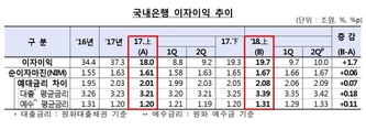 [파이낸셜데일리=김정호 기자]올해 상반기 국내 은행들의 당기순이익이 양호한 흐름을 보였다. 이자이익이 늘고 대손비용은 큰 폭으로 줄어들면서 이같은 실적이 나왔다. 16일 금융감독원이 발표한 '국내은행의 2018년 상반기중 영업실적(잠정)'에 따르면 국내 은행들의 당기순이익은 8조4000억원으로 나타났다. 지난해 상반기 8조1000억원 보다 4%(3000억원) 늘어난 수치다. 이자이익은 19조7000억원으로 지난해 상반기(18조원)보다 9.5%(1조7000억원) 증가했다. 대출채권 등 운용자산이 6% 증가했고 순이자마진(NIM)은 0.06%p 늘어 1.67%를 기록했다. 금리상승기 예대금리차가 커진 영향이다. 올해 상반기 예대금리차는 2.08%로 지난해 같은 기간 2.01%보다 0.07%p 상승했다. 다만 비이자이익은 3조원으로 전년 동기(4조6000억원)대비 33.4%(1조5000억원) 감소했다. 금감원은 지난해 상반기 발생했던 일회성 주식매각이익으로 인한 기저효과에다 IFRS9 시행에 따라 유가증권매매손익이 1조3000억원 감소한 탓이라고 설명했다. 또 지난해 상반기에는 외화순부채 상황에서 환율이 크게 하락, 외환·파생관련이익이 늘었었지만 올해는 환율이 상
