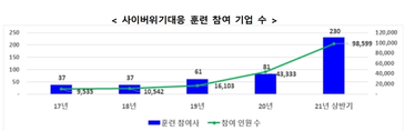 [파이낸셜데일리 이정수 기자] 최근 기업을 겨냥한 해킹이 급증함에 따라 기업 230곳이 올 상반기 사이버위기대응 모의훈련에 참여했다. 이런 가운데 대기업이 디도스 해킹을 인지하기까지 평균 3분이 걸려 중소기업의 9분보다 3배 더 짧은 것으로 나타나는 등 대기업의 대응력이 중소기업보다 더 좋은 것으로 나타나 눈에 띈다. 과학기술정보통신부는 한국인터넷진흥원(KISA)과 함께 지난 5월 17일부터 2주 동안 국내외 기업을 대상으로 실제 사이버공격과 동일한 방식으로 '2021년 상반기 사이버위기대응 모의훈련'을 실시했다고 6일 발표했다. 이번 모의훈련 참여 기업은 230개사(임직원 9만8599명)로 전년의 81개사(4만3333명) 대비 2.8배 늘었다. 이에 과기부는 최근 랜섬웨어, 디도스 공격 등 사이버위협이 증가함에 따라 많은 기업들이 사이버위기대응 모의훈련의 필요와 효과에 관심을 가지고 있다고 설명했다. 훈련은 참여기업 임직원 9만8599명을 대상으로 ▲맞춤형 악성 이메일 전송을 통한 지능형 지속 공격(APT) 공격 대응 절차 점검 ▲디도스 공격 및 복구 점검 ▲모의침투 등 실전형 훈련으로 진행했다. 임직원을 대상으로 최근 사회적 이슈를 중심으로 메일 제목을