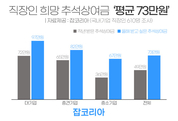 [파이낸셜데일리 강철규 기자] 직장인들이 올해 추석에 받고 싶은 추석상여금 규모는 평균 73만원 수준인 것으로 파악됐다. 취업플랫폼 잡코리아에 따르면 국내기업 직장인 610명을 대상으로 '희망하는 추석상여금'에 대해 설문조사를 실시한 결과 평균 73만원으로 집계됐다. 근무기업에 따라서는 대기업에 재직 직장인의 경우 평균 97만원으로 가장 높았고, 중견기업의 경우 평균 82만원, 중소기업의 경우 평균 67만원 등으로 조사됐다. 직장인들이 올해 추석에 희망하는 추석상여금 규모는 지난해 추석에 받았던 추석상여금보다 높은 수준이다. 응답자들에게 지난해 추석상여금을 받았는지 여부를 조사한 결과 '받았다'고 답한 직장인은 38.9%에 그쳤다. 대기업 직장인 중에서는 64.9%가 '지난해 추석에 상여금을 받았다'고 답했고 중견기업 직장인은 50.6%, 중소기업 직장인은 29.8%가 받았다고 밝혔다. 지난해 받았던 추석상여금은 전체 응답자 평균 49만원으로 집계됐다. 이를 감안하면 올해 희망 추석상여금은 49.8%(24만원) 높은 수준이다. 이 밖에 지난해 직장인들이 실제 받은 추석상여금은 대기업 직장인이 평균 72만원, 중견기업은 평균 65만원, 중소기업은 평균 36만원