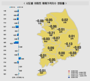 [파이낸셜데일리 강철규 기자] 최근 빅스텝(한번에 기준금리 0.50%포인트 인상)의 영향으로 전국 아파트값 하락폭이 확대되는 가운데 서울은 8주 연속 하락세를 이어가고 있다. 서울에선 서초만 유일하게 상승세를 유지하고 있다. 21일 한국부동산원이 7월 셋째 주 전국 주간 아파트가격 동향을 조사한 결과에 따르면 전국 매매가격은 지난주(0.03%)보다 0.01%P 더 떨어진 0.04%를 기록했다. 서울 역시 지난주(-0.04%) 보다 0.01%p 하락한 0.05% 기록하며 8주 연속 하락했다. 특히 강남 11개구는 지난주보다 0.02% 떨어졌다. 서초구(0.03%)만 반포동 재건축과 신축 위주로 수요가 유지돼 가격이 올랐고, 나머지 송파구(-0.02%)·강동구(-0.02%)·구로구(-0.07%)·금천구(-0.07%)·관악구(-0.05%)는 일대 대단지 중소형 위주로 하락세가 두드러졌다. 강북 14개구 역시 지난주(-0.06) 보다 0.03%p 떨어진 0.09%를 기록했다. 노·도·강으로 불리는 노원구(-0.13%)·도봉구(-0.14%)·강북구(-0.13%)가 특히 떨어지면서 강북권역 전체의 하락세를 이끌었다. 한국부동산원은 “기준금리 인상으로 대출금리 추가 인상