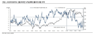 [파이낸셜데일리=송지수 기자]코스닥 지수에 비해 조정 폭이 코스피의 조정 폭이 크지 않다는 점에서 지수의 반등 가능성을 엿볼 수 있다는 분석이 나왔다. 대형주를 중심으로 외국인 투자자의 선물 매수가 이어지고 있으며 추가 매수 여부가 추세적 반전을 이끌 수도 있다는 예측이다. 이중호 KB증권 연구원은 25일 "7월 한 달간 코스닥 지수는 하락했지만 코스피는 그렇지 않았다. 오히려 대형주 위주 편성이라 할 수 있는 코스피200은 상승했다"며 "최근 나타난 외국인 투자자의 선물 매수를 주목해야 한다"고 했다. 실제 한국거래소에 따르면 코스피200은 지난 2일(292.93)부터 24일(295.49)까지 종가 기준 0.87% 상승했다. KB증권에 따르면 외국인 투자자는 지난 16일 이후 코스피200 선물을 1만3993계약 순매수했으며 누적 순매도는 1만7861계약까지 줄어든 상태다. 이 연구원은 "외국인 투자자는 최근의 시장 투자심리 악화 상황에서도 코스피200 선물을 꾸준히 매수했다"며 "이미 코스피 반등에 대비하고 있는 것"이라고 분석했다. 그러면서 "반등이 추세적인 전환이 될 수 있는지는 선물의 추가 매수 가능성에 달려 있다"며 "미 결제약정 감소를 동반해 매수