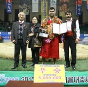 알바노 데니스 크루스(스페인)가 2013세계특별장사씨름대회 정상에 올랐다.크루스는 15일 충남 서산시 농어민문화체육센터에서 열린 IBK기업은행 2013 천하장사 씨름대축제 5일째 세계특별장사씨름대회 결승전(3판 2선승제)에서 문크사이칸 우수크바야르(몽골)를 2-0으로 제압했다.올해로 세 번째 천하장사 씨름대축제에 참가 중인 크루스는 196㎝ 150㎏의 당당한 체구를 앞세워 상대들을 여유있게 물리쳤다. 스페인 루차카나리아에서 A급 선수로 분리되는 크루스는 멋진 기술들로 관중들의 박수를 자아냈다.크루스는 준결승에서 구티에레즈 페레즈(스페인)를 밀어치기로 따돌린 뒤 우스쿠브아르까지 밀어치기와 배지기로 손쉽게 제압했다.233㎝ 195㎏의 거구로 화제를 불러 모으고 있는 커티스 존슨(미국)은 3위를 차지했다.