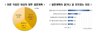 [파이낸셜데일리=강철규 기자]20~40대 미혼 여성 직장인의 60%는 향후 결혼 계획이 없는 것으로 나타났다. 이상적인 자녀수를 2명이라고 생각했지만 현실적으로 1.2명이 적절하다고 응답했다. 이같은 설문 결과는 결혼에 대한 가치관이 변하고 있고, 여성 직장인이 느끼는 소득·고용 불안이 해소되지 않고 있기 때문으로 풀이된다. 4일 전국경제인연합회 산하 한국경제연구원(한경연)은 여론조사기관 리서치앤리서치에 의뢰해 '2018년 저출산 정책에 대한 2040 여성 근로자 인식(516명 응답)'을 조사해 결과를 발표했다. 조사결과에 따르면 20~40대 미혼 여성 직장인들은 향후 결혼 계획을 묻는 질문에 '앞으로 결혼할 것'이라는 응답은 39.4%에 그쳤다. 반면 '결혼하지 않을 것'(26.3%)이나 '모르겠다'(34.3%)는 응답은 60.6%에 달했다. 이들은 결혼계획이 없거나 잘 모르겠는 이유에 대해 '결혼이 필수가 아니라고 생각해서'(46.3%)라는 응답이 가장 많았고 '경제적 여유가 없어서'(20.6%), '일·생활 균형이 어려운 사회·근로환경 때문'(11.4%) 순으로 답했다. 한경연은 이같은 조사결과에 대해 "결혼에 대한 가치관이 변화했기 때문으로